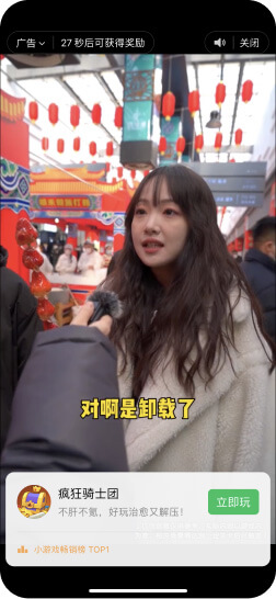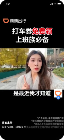 与主流视频APP相似的视频信息流,沉浸式用户体验,转化率更高